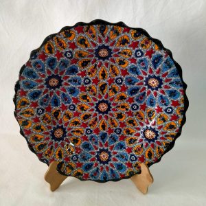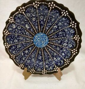 Sultan Çini- ÇİNİ EL EMEĞİ DESENLİ 18 CM Özel El İşi Teship Sanatı Duvar Tabağı