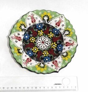 - Desenli Vip Teşhip Sanatı Özel Tasarım Kabartma Desenli Çini 18 Cm Duvar Tabağı Ürünümüz tamamen el işçiliği ile 60 yıllık geleneksel atadan gelen kendi tekniklerimizle üretilmiştir. Samur fırça ve altın yaldız kabartma teknikleri kullanılarak özel olarak üretilmiştir. Tüm ürünlerimiz desen, renk ve şekil olarak farklılık gösterir. Çünkü bu ürünlerimiz tamamen el işçiliği olması sebebiyle diğer ürünlerden ayrılırlar.