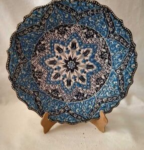 Sultan Çini -çini El Emeği 30 Cm Teşhip Sanatı Özel Tasarım Kabartma Desenli Tabak