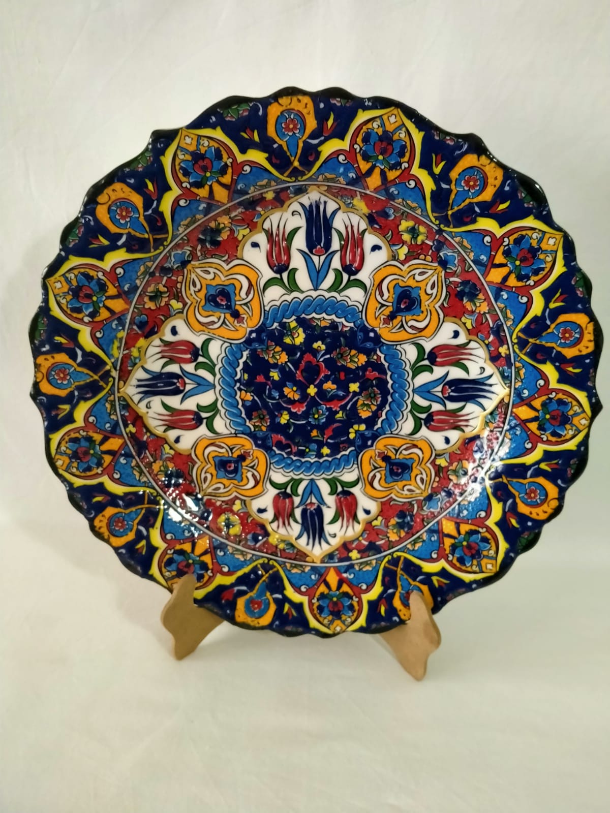 Sultan Çini-CM ÇİNİ EL EMEĞİ DESENLİ 25 CM Özel El İşi Teship Sanatı Duvar Tabağı