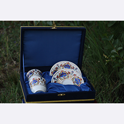 - Desenli Vip Teşhip Özel Tasarım Kabartma Desenli Çini 2’li Kadife Kutulu Kahve Takımı Ürünümüz tamamen el işçiliği ile 60 yıllık geleneksel atadan gelen kendi tekniklerimizle üretilmiştir. Samur fırça ve altın yaldız kabartma teknikleri kullanılarak özel olarak üretilmiştir. Tüm ürünlerimiz desen, renk ve şekil olarak farklılık gösterir. Çünkü bu ürünlerimiz tamamen el işçiliği olması sebebiyle diğer ürünlerden ayrılırlar.