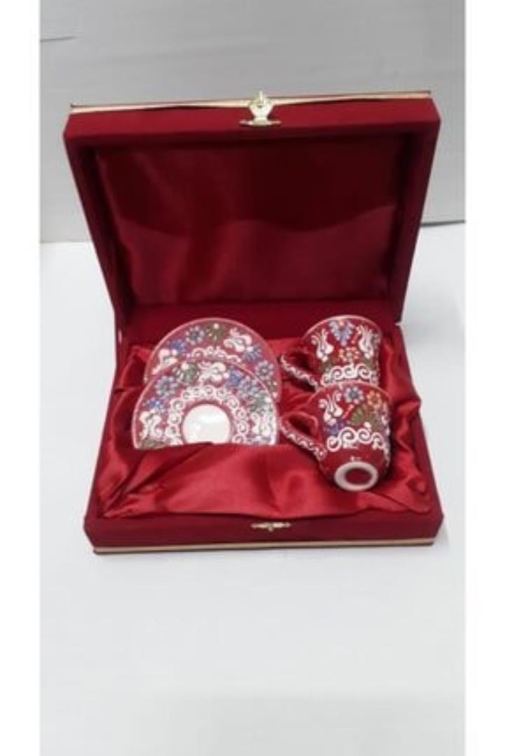 Sultan Çini -çini El Emeği Teşhip Özel Tasarım Kabartma Desenli Çini 2’li Kadife Kutulu Kahve Takımı